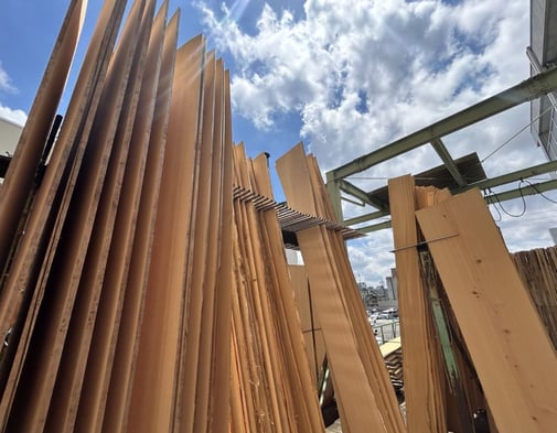 加工前に、屋外で風雨にさらして安定させる大切な工程