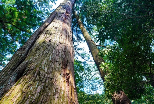 神宮の社等の建築に使用される由緒正しいご神木と、兄弟のように育ったご神木の周木。ご神木が成熟し切り出される少し前、一足先に間伐されて神具等の材料になります。ご神木の神気に包まれ、ご神木と共に育まれた由緒ある木材です。