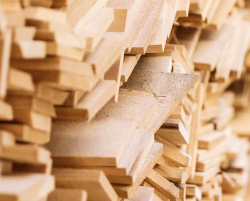 贅沢に詰められた三方製作工程ででた木曽檜の端材